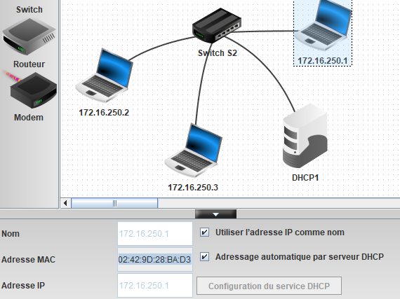 Passez ensuite en mode SIMULATION et vérifiez qu'une adresse différente a bien été attribuée automatiquement aux trois portables.