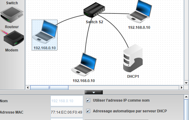 Passez ensuite en mode SIMULATION et vérifiez qu'une adresse différente a bien été attribuée automatiquement aux trois portables.